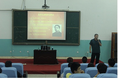 521日晚英国上市公司官网365经理、教授董立老师在新校区113教室题为毛泽东体育的思想者、践行者学术讲座,英国上市公司官网365副书记(主持工作)佘涛主持了讲座