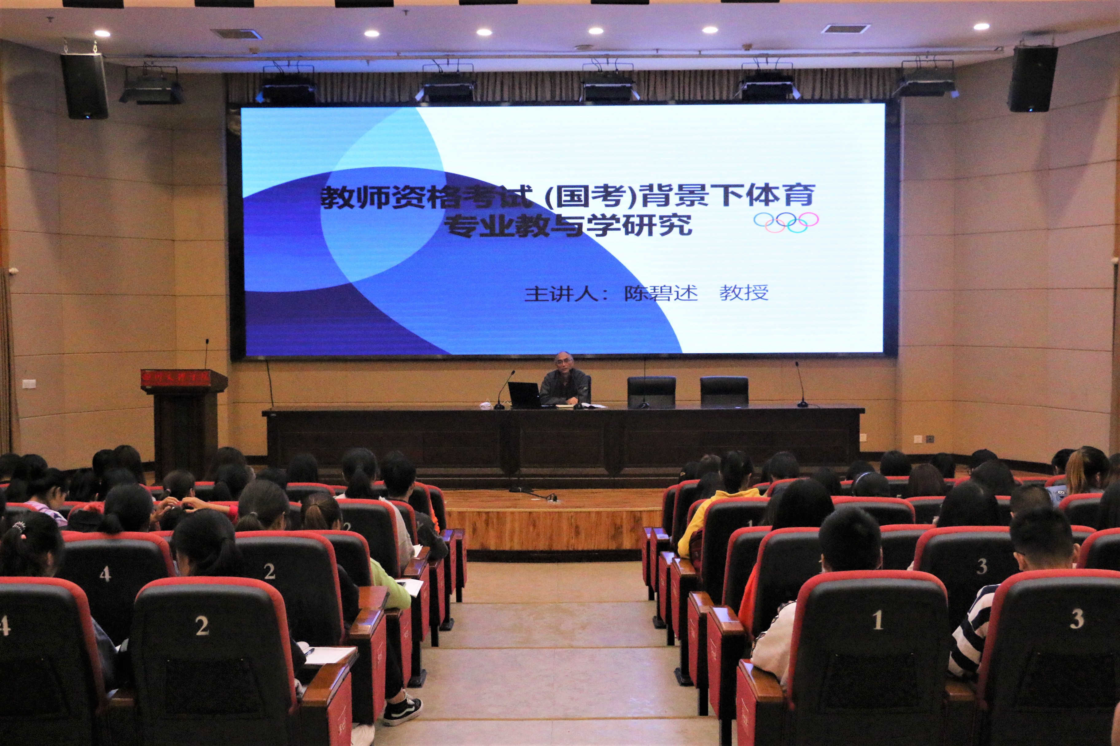 通过此次讲座,使英国上市公司官网365全体师生认识到了在新形势下,员工应该如何学、教师应该如何教、员工应该学什么、教师应该教什么等问题,也为体育专业员工教团队格证备考提供了指导与思路。此次讲座持续近2个小时,陈教授的讲座内容丰富、思路清晰、方向明确,受到在场全体师生的欢迎。
