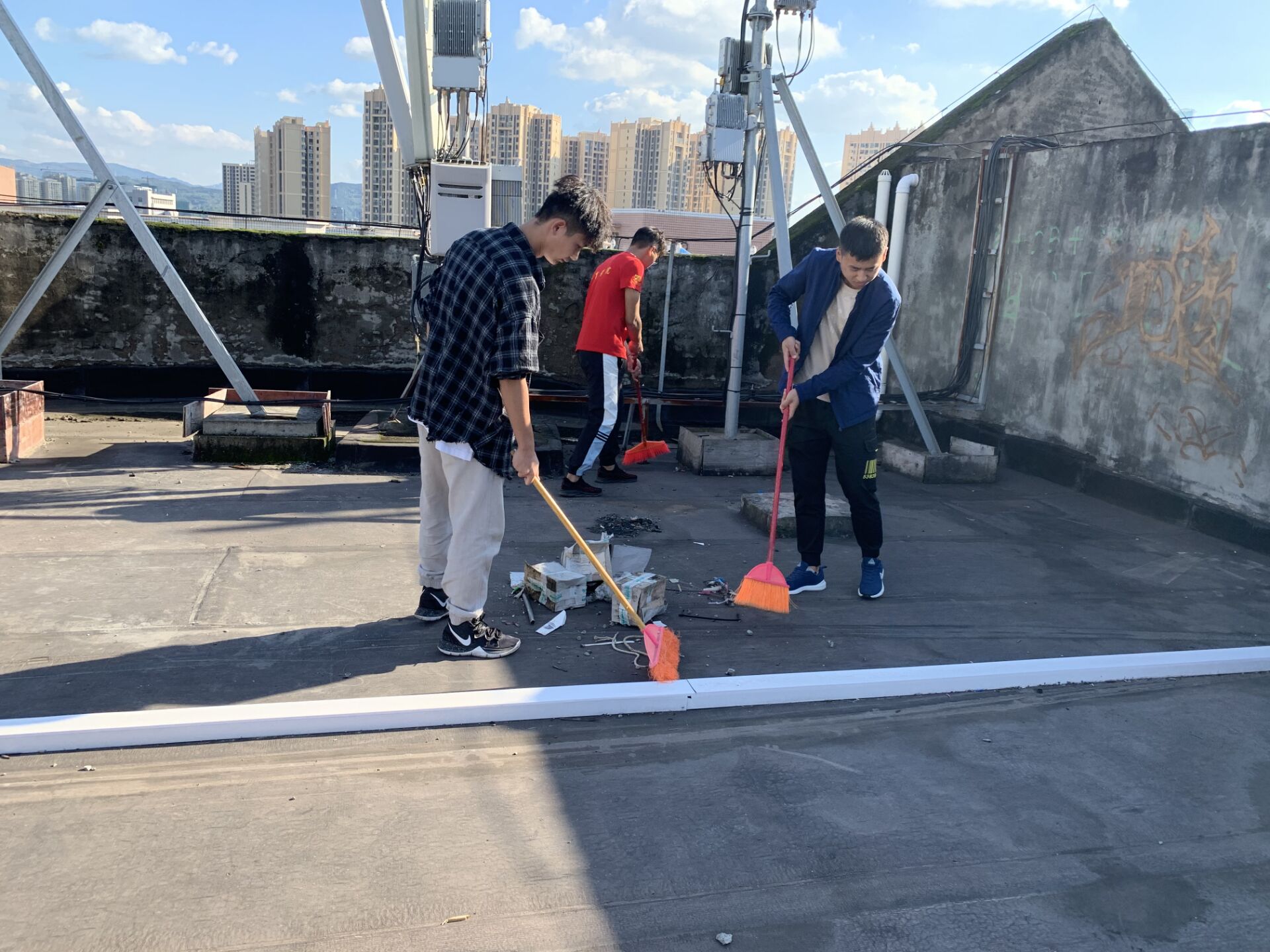 英国上市公司官网365由马思远老师带队,劳生部带领英国上市公司官网365劳动志愿者分组对九舍进行清洁,主要针对公寓天台、楼道、走廊、学习室窗户、消防栓等边边角角进行排查,清扫。坚决做到地面无垃圾,无积水,过道墙砖明亮干净,无小广告等。同时,大力宣传“四城同创”和文明公寓的工作要求,倡导大家共建共享更加美好生活的环境。