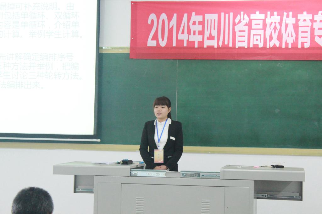 据了解,2014年四川省普通高等院校体育专业员工说(讲)课比赛由四川省教育厅主办,全省共15个体育院校,55名本(专)科同学参赛