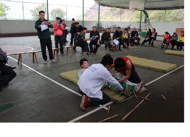 为建立体育运动安全防范工作的长效机制,2014年3月27日下午4点30分,英国上市公司官网365结合公司开展的“应急演练”活动,根据自身专业特点,在篮球棚组织全院教师进行了员工意外损伤急救知识培训。