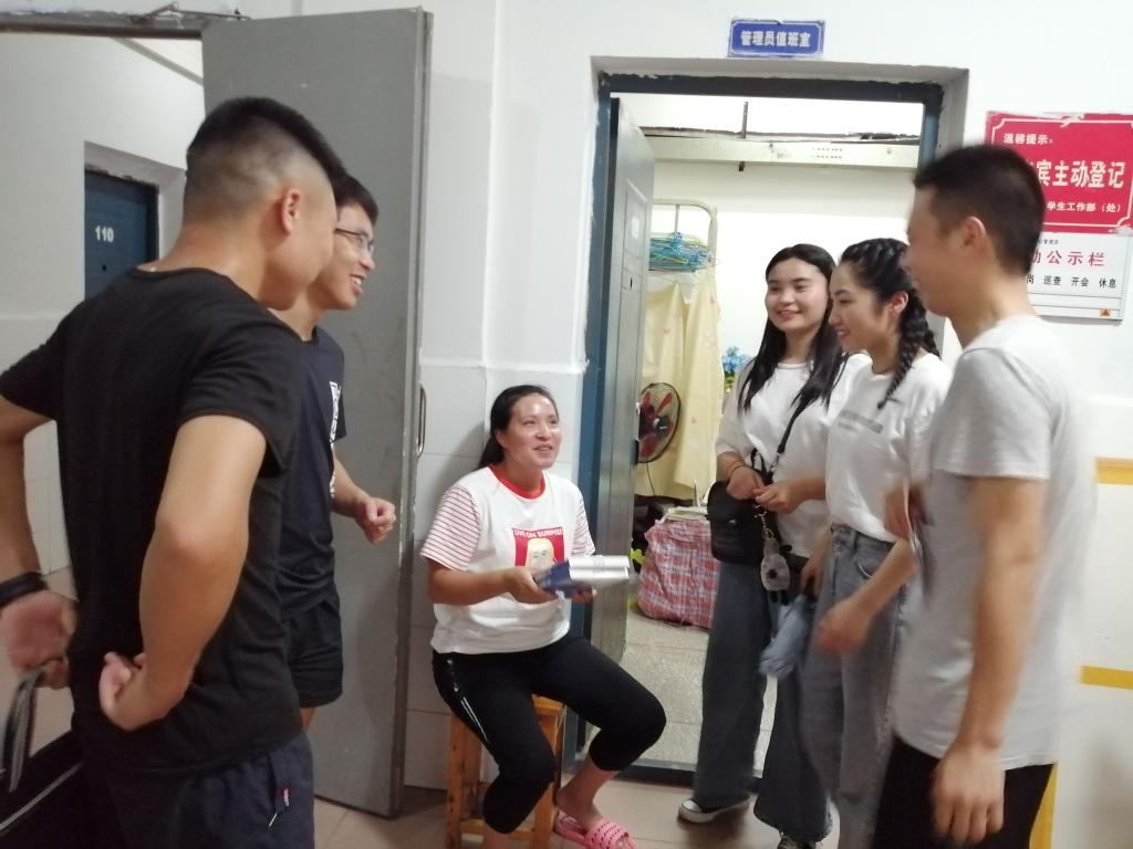 “李叔,您辛苦了!”“于叔,您辛苦了!”“叔叔阿姨,您们辛苦了!”6月10日—13日毕业生党员分别前往田径场器材室、室内篮球场器材室、公寓管理员办公室话别相伴四年的叔叔阿姨,赠送了口罩,表达了感激之情!感谢您们的陪伴,吾将励志前行!