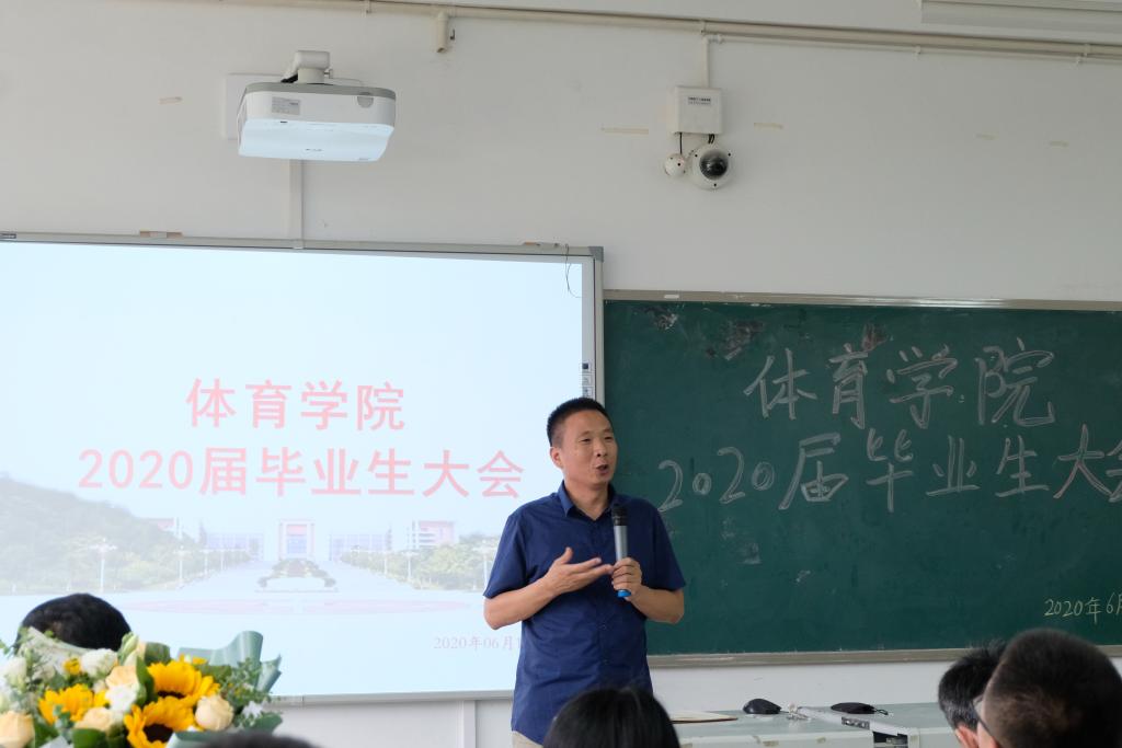 2020届毕业生毕业离校之际,20206161630,公司在艺术传媒大楼4030教室举行了2020届毕业生欢送大会。体育公司党总支书记王兆忠、经理佘涛、党总支副书记彭波、副经理孙亮亮、党政办公室主任樊永强、学工办主任祝利平、毕业班兼职辅导员以及2020届在校毕业生参加了欢送会。