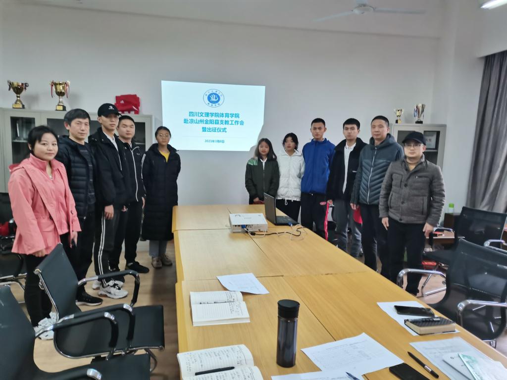 20213814:30,公司在艺术传媒楼3019会议室召开2021年春凉山州金阳县支教工作会及出征仪式。党总支书记王兆忠,经理佘涛、党总支副书记彭波,学工办主任祝利平,辅导员闫青以及支教员工参加了会议。
