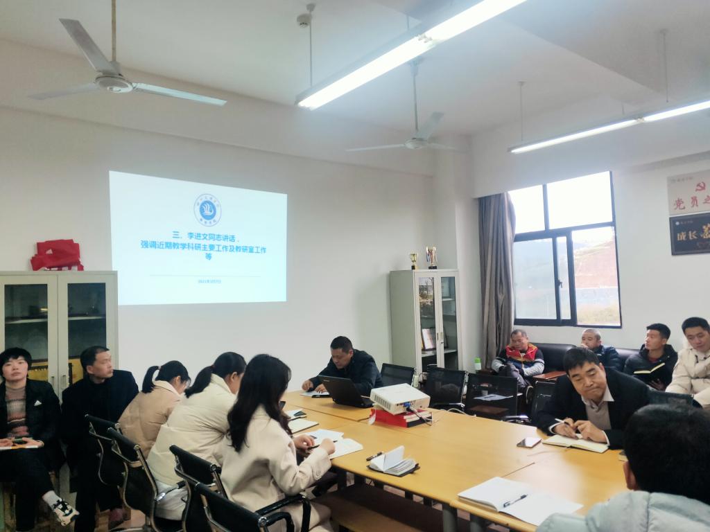 会议第三个议程:李进文,安排布置近期教学科研工作。他强调,一要严谨规范,高效做好教学工作;二要注重课堂规范;三要提高员工学习的主动性与积极性;四要注重培养员工的师范技能;五要积极申报科研项目;六要整合资源,提高教学质量。同时要积极主动的做好硕士点建设前期准备工作,加快师范认证脚步。
