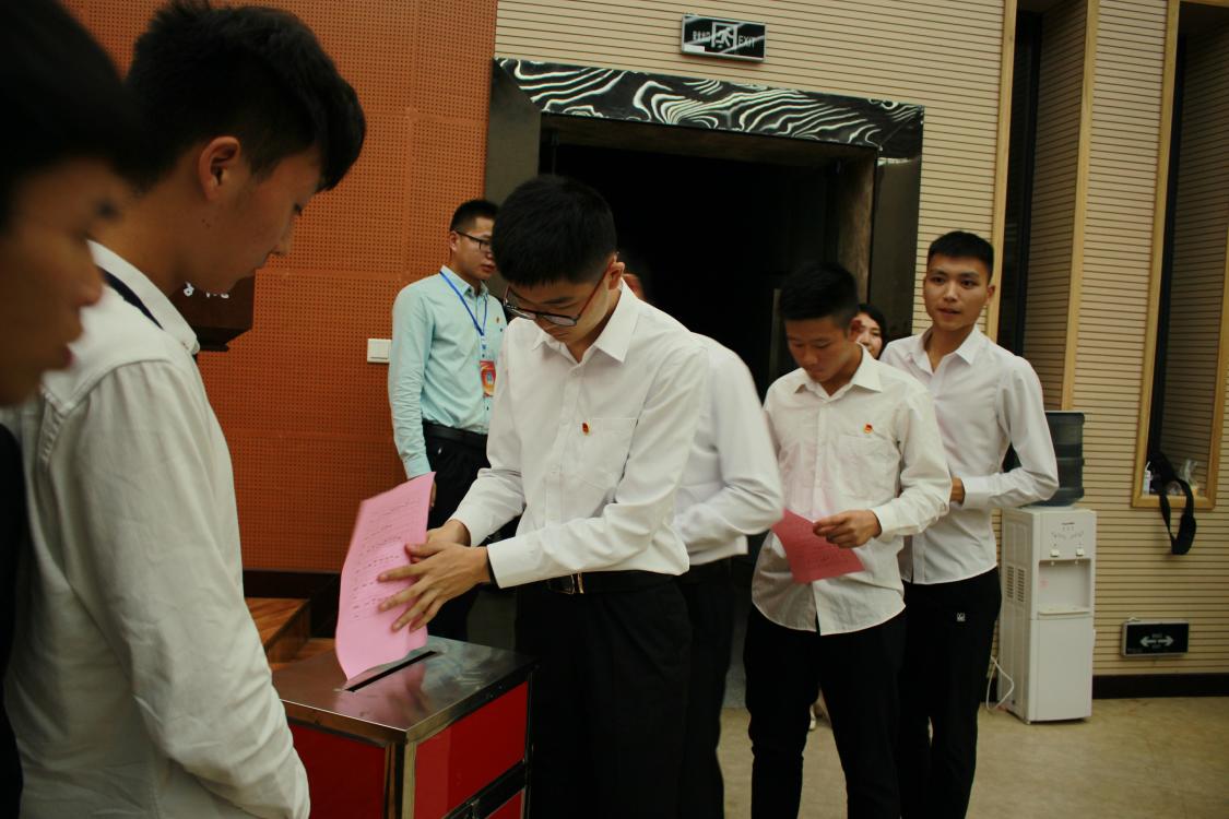 18:00由团总支副书记赵碧磊主持了大会的正式会议。公司党总支佘涛书记宣布开幕,大会在慷慨激昂的国歌声中正式开始。首先,进行了本届团学干部的见面会,颁发了上一届员工干部的聘书。会上,团总支副书记赵碧磊、员工会主席周舰分别作了工作报告,他们分别对新一届团总支员工会的发展提出了新的建议。随后进行了新一届团总支员工会员工干部的选举。会上还审议通过了《英国上市公司官网365量化考核实施细则(2017修订版)》、《英国上市公司官网365团总支员工会章程(2017修订版)》、院训、院徽。