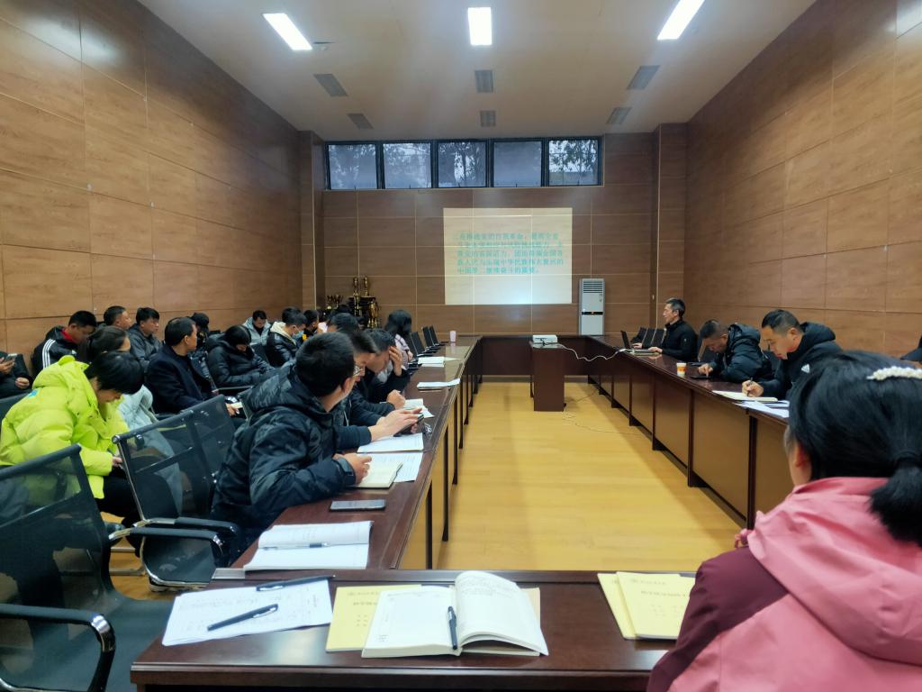 1215日,英国上市公司官网365全体教职工在体育馆副馆集中学习党的十九届六中全会精神,党总支书记王兆忠主持学习会并作学习辅导。