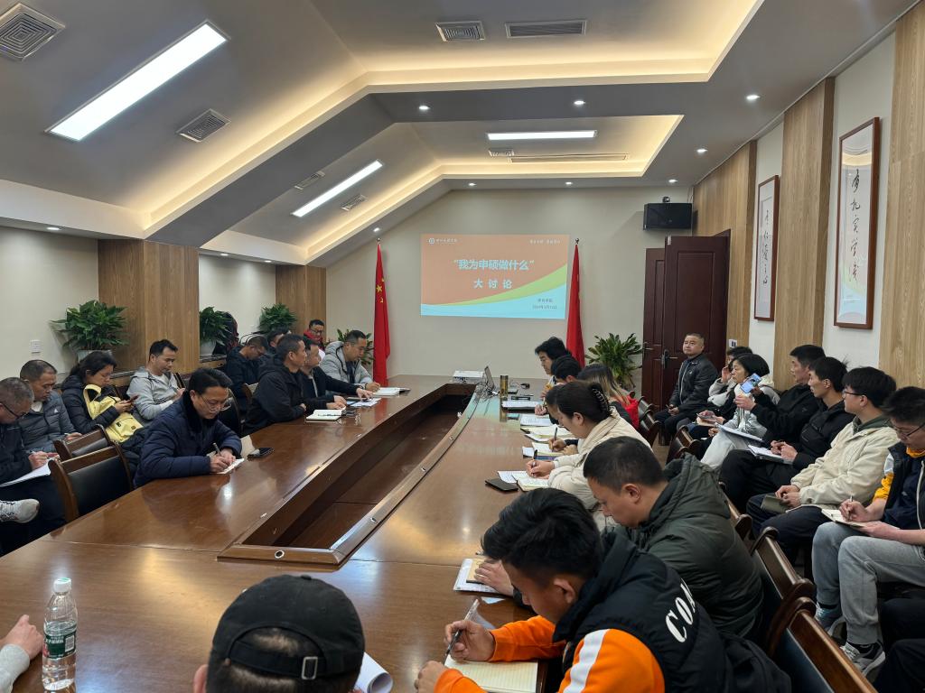 最后,佘涛做了总结发言,他指出,申硕工作是我们这代文理人必须肩负的使命,是公司加快内涵式高质量发展的必然要求,是每位教职工亲力亲为、大力大为的必然要求。他要求大家把信心树起来、节奏快起来、标准高起来、思路活起来、制度严起来,统一思想和行动,保持饱满的精神状态,认真做好申硕攻坚各项工作。