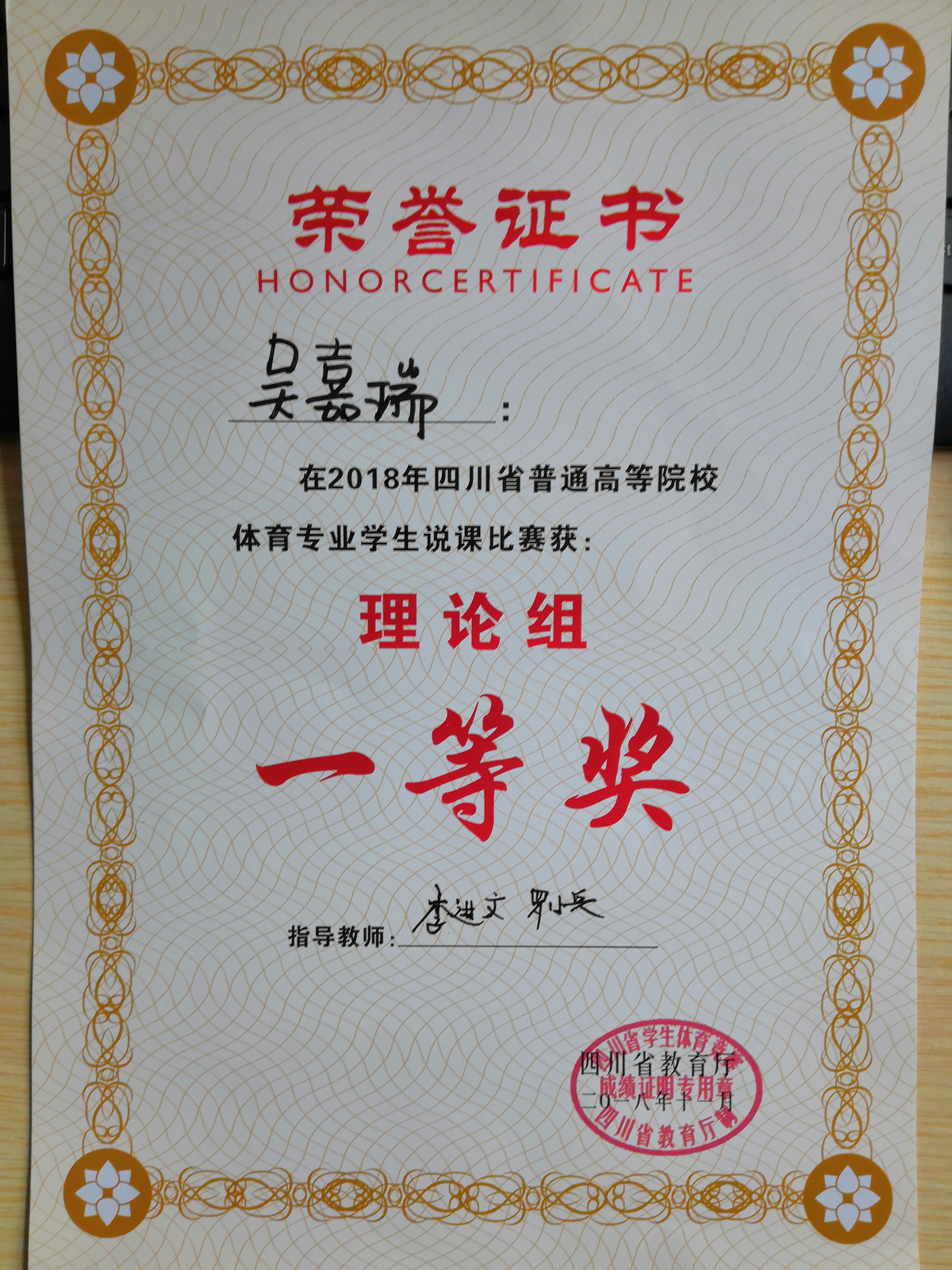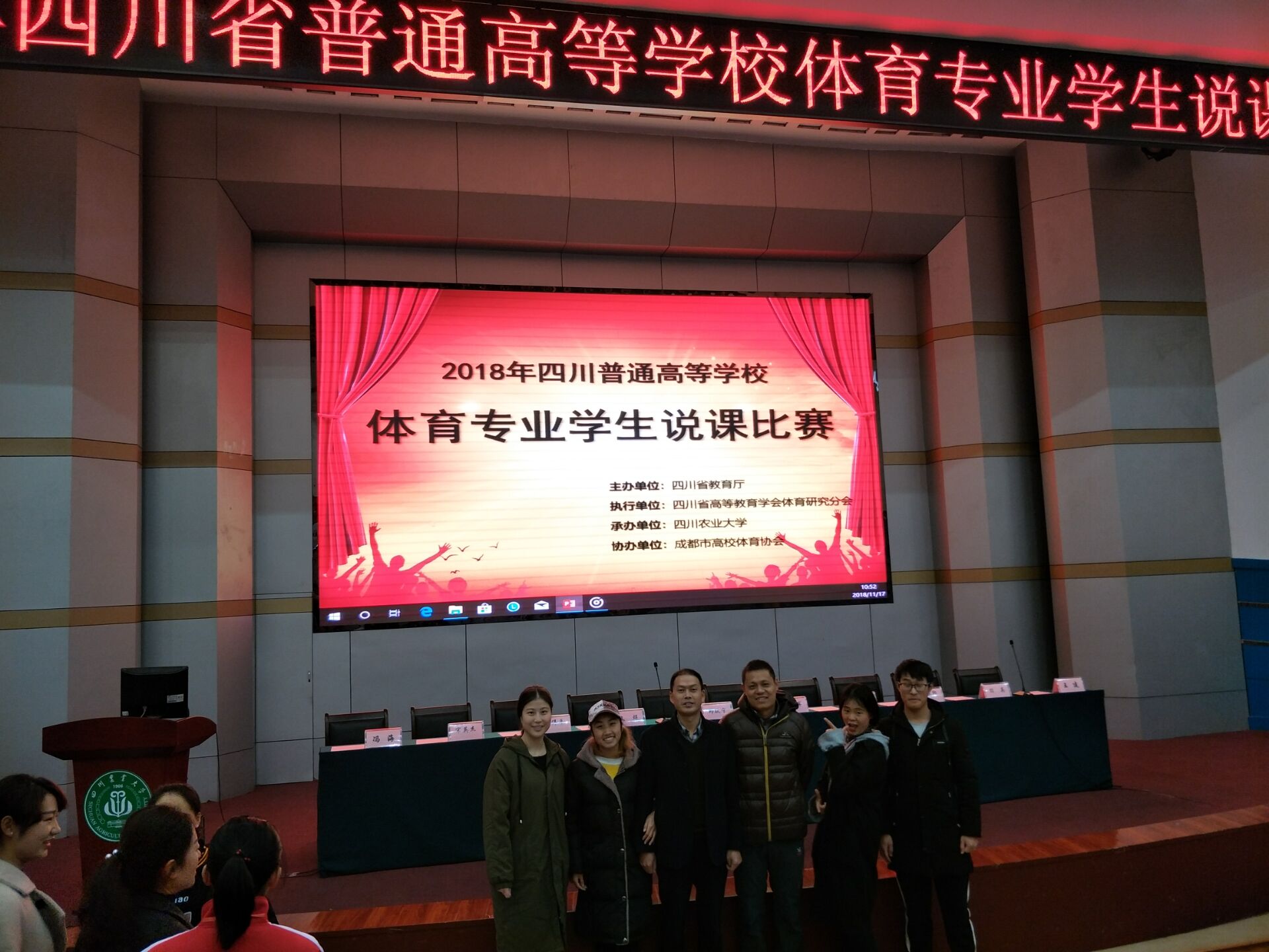 2018年11月15日至17日,由四川省教育厅主办的2018年四川省普通高等院校体育专业员工说课比赛在四川农业大学圆满落幕。经过两天的激烈竞争,英国上市公司官网365吴嘉瑞同学获得理论组一等奖,康利菊、曾子芮和陈念等三名同学获得三等奖,四川文理代表队荣获团体二等奖,成绩较以往有较大突破。陈碧述教授获得“优秀裁判员”称号。