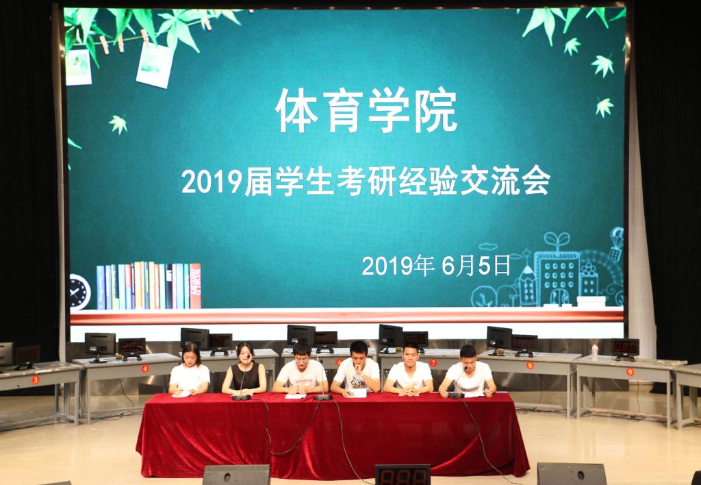 2019年6月5日下午4: 30,公司在校园影院举行“2019届考研经验交流会”,由桂元保、吴嘉瑞、钟俊宇、唐红梅、张树林、李生彬六位研究生代表主讲,体育公司党总支书记兼经理佘涛教授、党总支副书记王进教授、专兼职辅导员、教师代表以及大一、大二、大三的同学参会,会议由彭波老师主持。