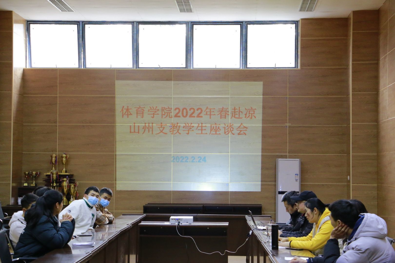 2022224日下午,公司在体育馆附馆105召开了2022年春赴凉山州支教员工座谈会。体育公司党总支书记王兆忠,经理佘涛,党总支副书记彭波,团总支书记祝利平,部分专兼职辅导员以及支教员工参加了本次座谈会。会议由辅导员闫青主持。