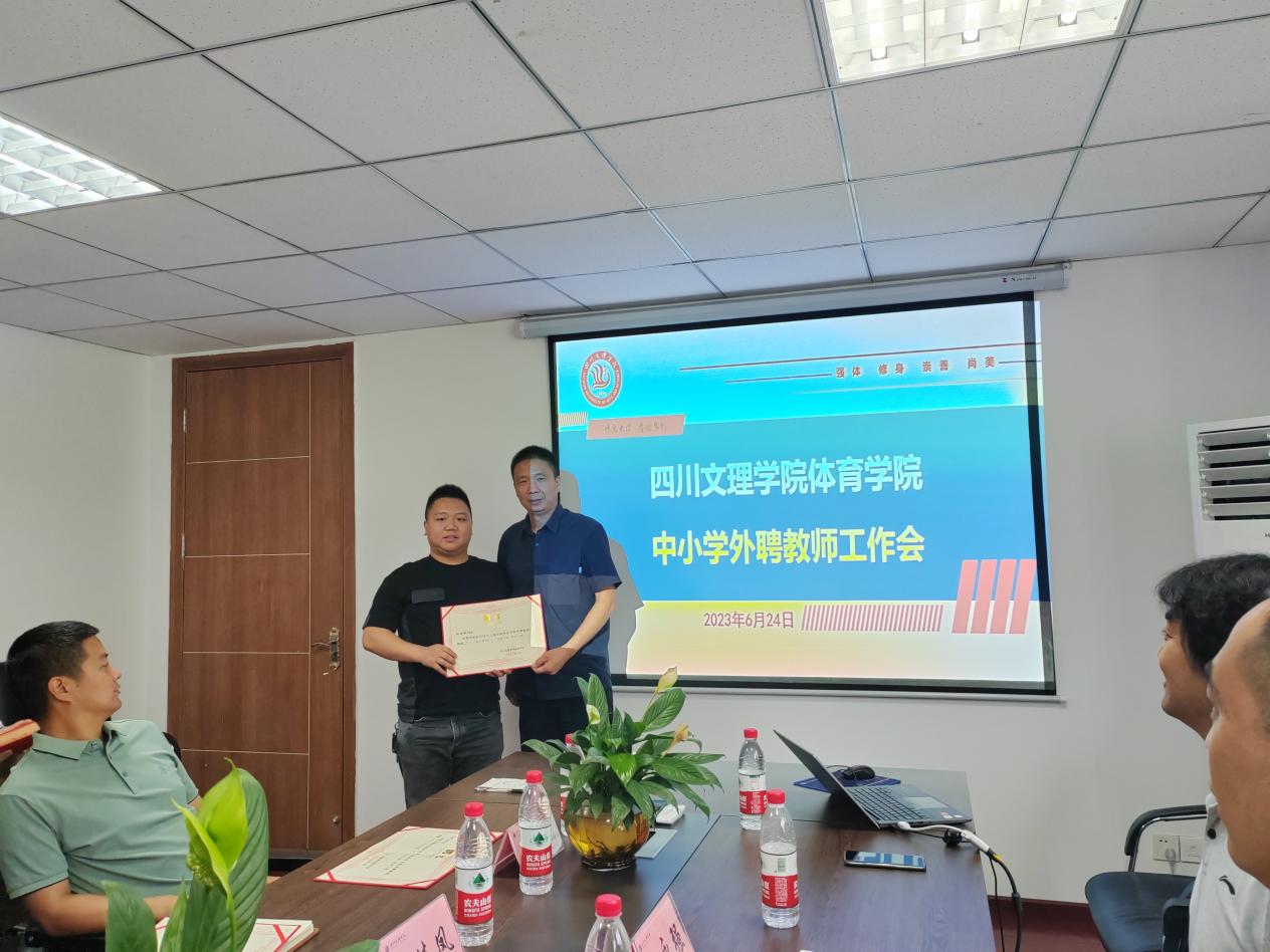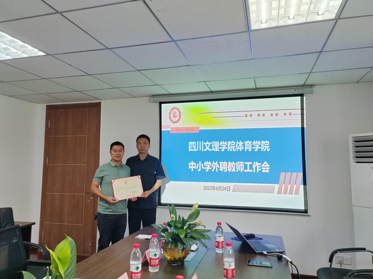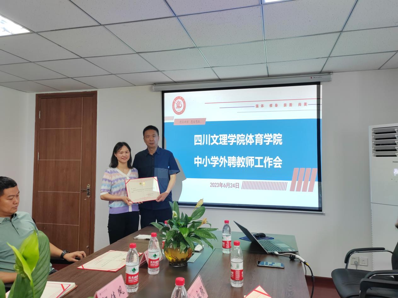 佘涛经理对英国上市公司官网365的办学历程及基本情况进行了简要介绍,并代表公司感谢大家在公司发展中给予的大力支持。他汇报了公司体育教育专业认证工作的推动情况。他指出,师范专业人才培养质量评价的重要依据是师范生和用人单位的满意度,为对接社会需求,提升人才培养质量,公司特聘部分中小学优秀体育教师和专家作为公司体育教育专业的外聘教师。随后,经理佘涛、副经理孙亮亮为向珏璞、冉香山、杨曲、郎佳凤四位中小学优秀教师颁发了聘书。并围绕中小学体育教育课程标准、体育教育人才需求、中小学体育教育现状及困惑,与会老师进行了深入的交流。