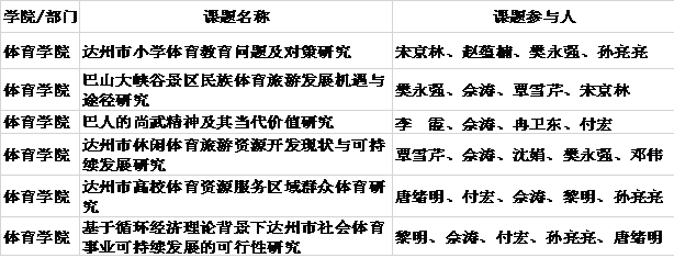 2020421日,达州市社科联办公室下发文件《达州市社会科学研究十三五规划2020年度课题立项通报》(达市社科〔20209号)。据悉,公司各科研团队荣获6项课题立项。