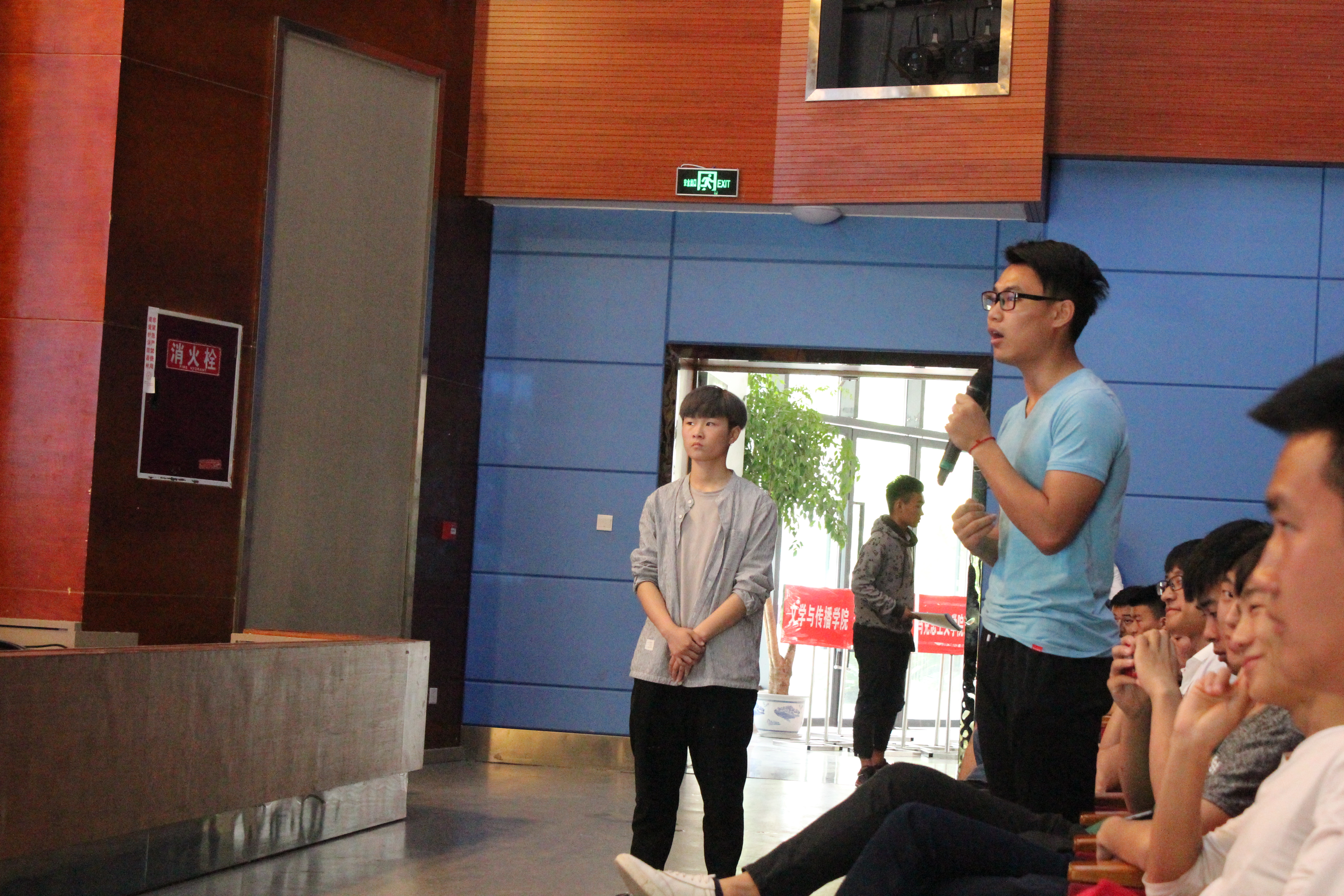 活动后主持人组织同学们一起观看本次寝室文化节活动中的优秀作品。