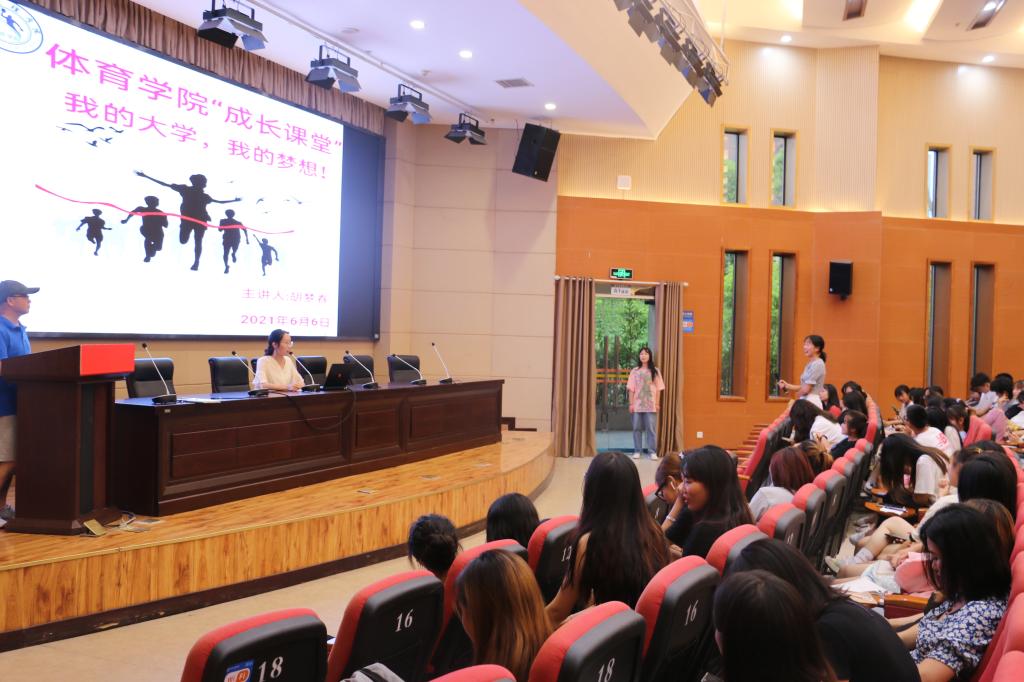 2021661830分,英国上市公司官网365“成长课堂”在学术报告厅A厅首次开课。体育公司党总支书记王兆忠、副书记彭波、辅导员石姣娜、闫青及2019级、2020级全体同学参加了本次活动。本次“成长课堂”主题为“我的大学,我的梦想”,由英国上市公司官网3652017级员工胡梦春同学主讲。