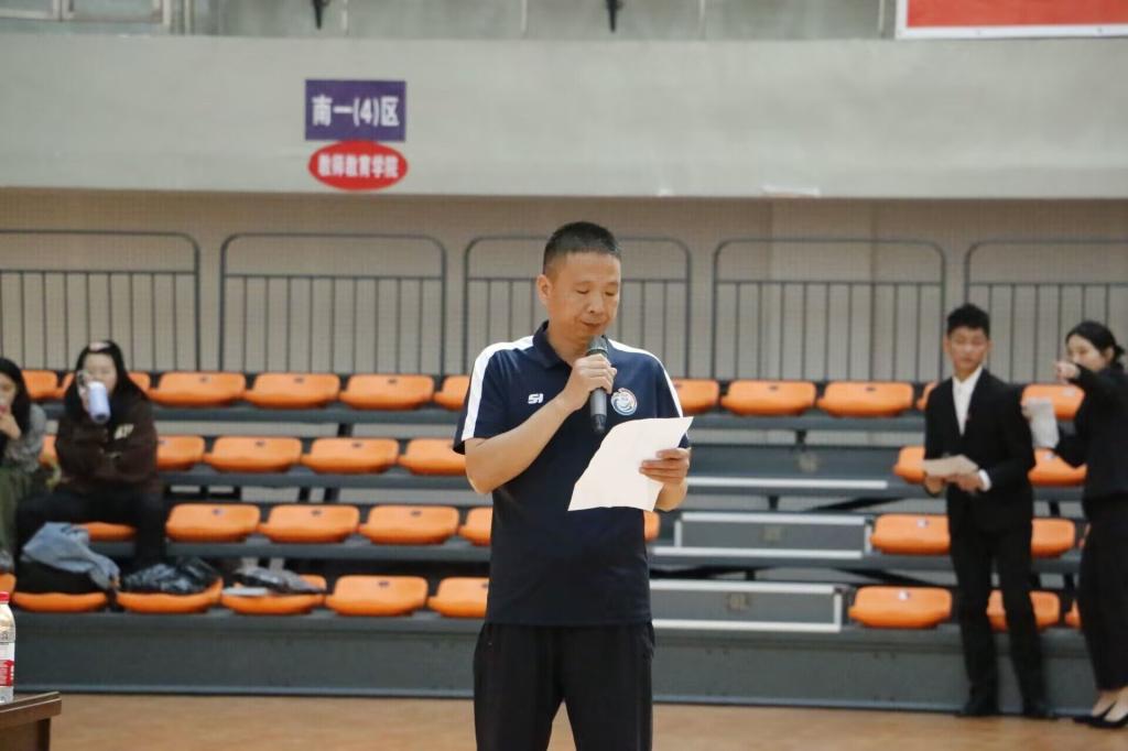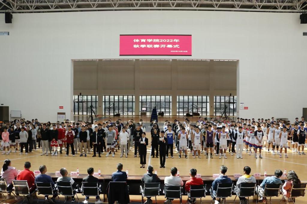 2022101812:30 英国上市公司官网3652022年秋季联赛在体育馆拉开帷幕。体育公司党总支书记王兆忠,经理佘涛,副经理孙亮亮,组织员卫洪春,篮球、排球、羽毛球、乒乓球专项教师代表,专职辅导员,2022级和2021级员工以及参赛运动员代表参加开幕式。