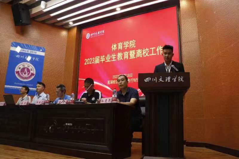 会上,毕业生代表何木金和修业班代表陈佳林作了发言。何木金表示感恩大学四年的经历与收获,今后将继续用积极乐观的心态去面对工作和生活,祝愿母校更辉煌。陈佳林表示,低年级员工应多向优秀的师兄师姐学习,祝愿师兄师姐在以后的学习和生活中,实现自我价值,一帆风顺。团总支书记祝利平、辅导员闫青对团组织关系转接和毕业生鉴定工作进行了安排。经理佘涛、副经理孙亮亮和组织员卫洪春对毕业生进行赠言,他们希望同学们牢记文理人的身份,牢记艰难困苦玉汝于成的文理精神,要保持体育人的一贯作风,坚守理想信念,为社会做出应有的贡献。最后,党委书记王兆忠作了讲话,他充分肯定了2023届毕业生们在过去四年里所取得的进步和成绩,他希望同学们把过去的经验和教训分别转化为明天事业发展中的催化剂和清醒剂,在新的人生道路上踔厉奋发,捷报频传。