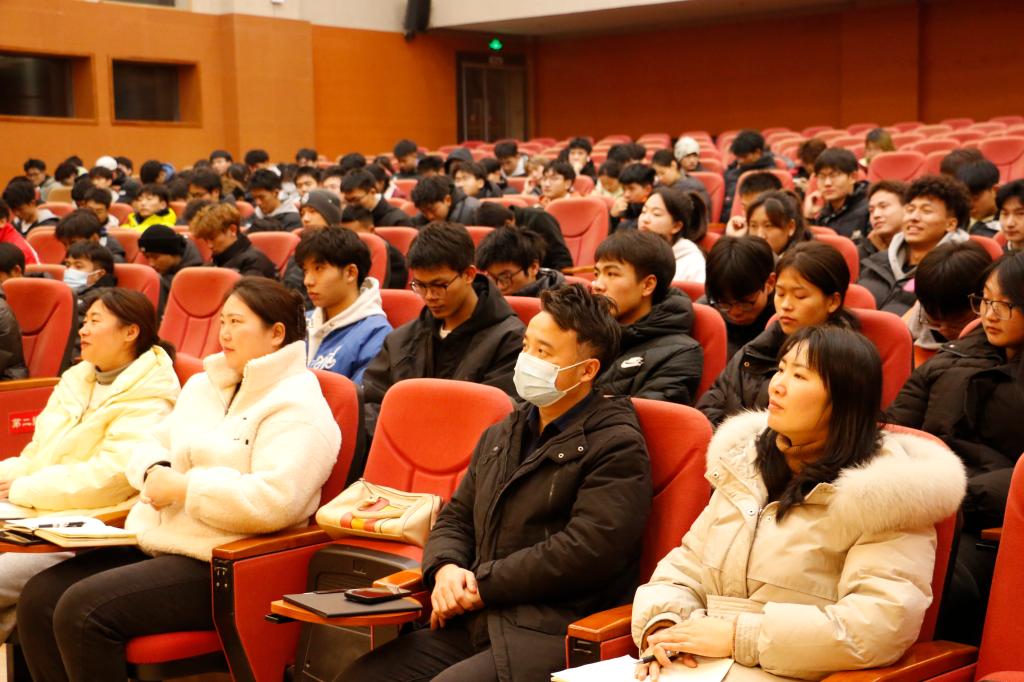 20231225日晚19:00,公司在学术报告A厅开展了第七场2023级新生入学教育讲座。公司党委书记王兆忠,党委副书记靳浪,学工办主任祝利平,辅导员石姣娜、李波、刘方芳及2023级全体新生参与本次讲座。王兆忠担任主讲。