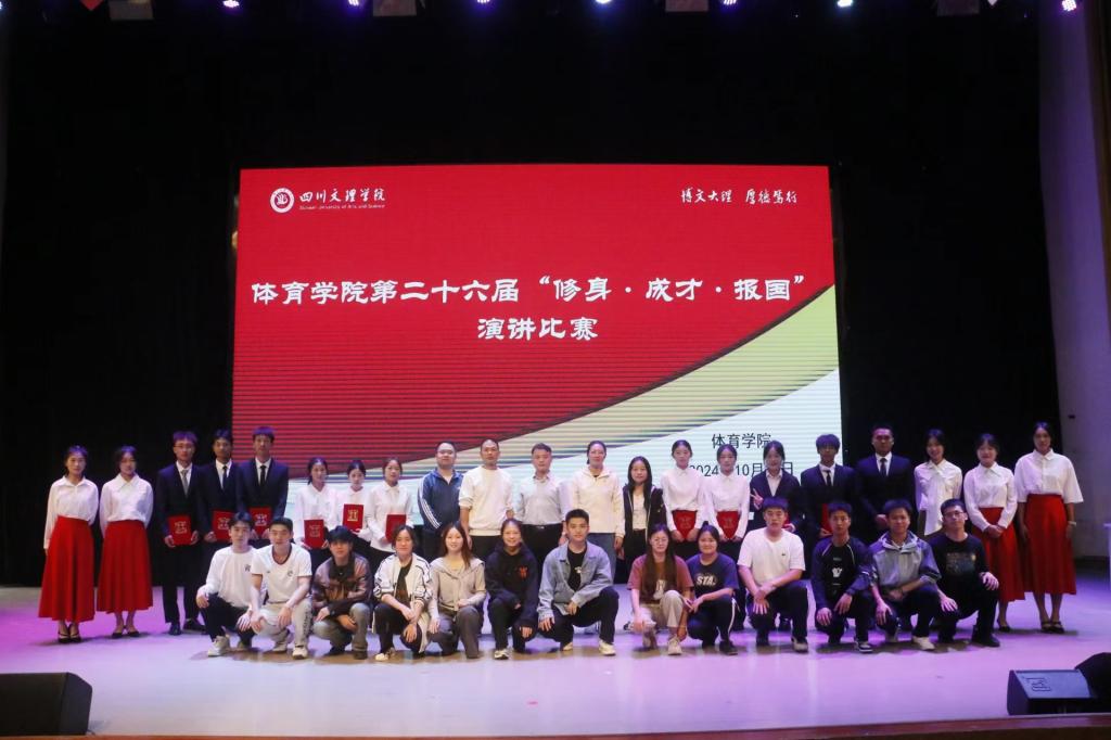 2024101614时,公司第二十六届《修身·成才·报国》演讲比赛在多功能厅举行,体育公司党委副书记靳浪,学工办主任祝利平,体测中心主任罗小兵,专职辅导员邓超、闫青以及2024级新生参加此次活动。