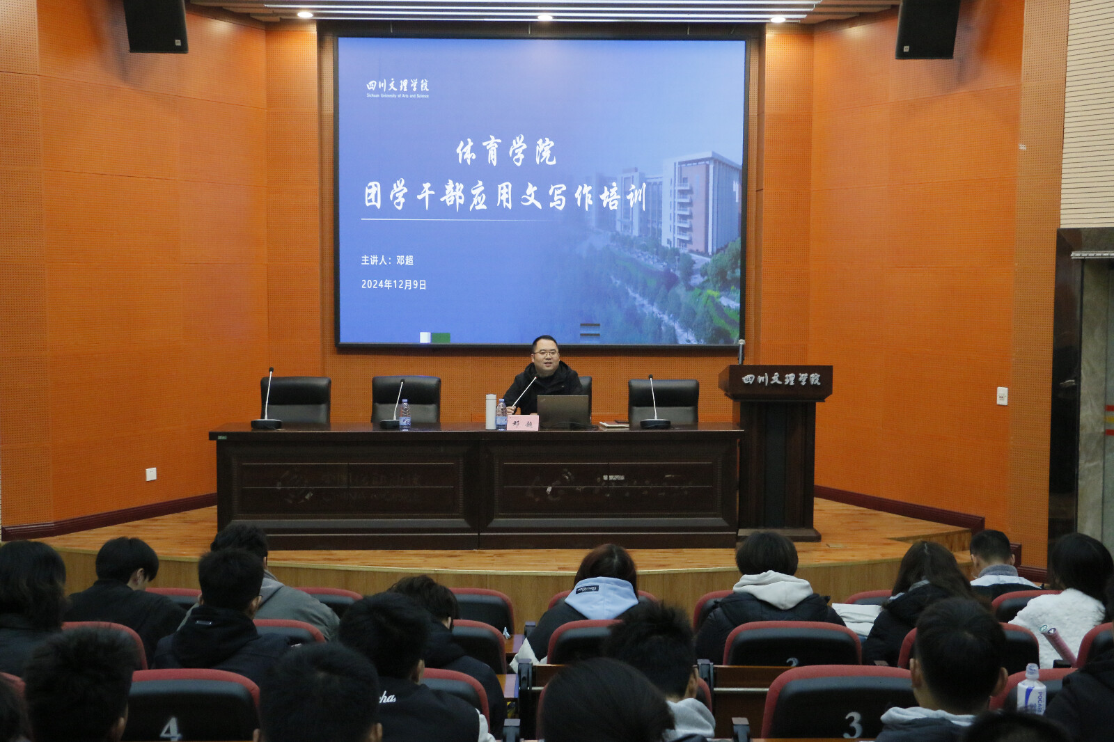为提升团学干部的应用文写作能力,2024129日,公司在莲湖校区学术报告厅B厅开展团学干部应用文写作培训,专职辅导员邓超担任主讲人。体育公司党委副书记靳浪、学工办主任兼团总支书记祝利平、专职辅导员闫青、李波及团总支、员工会干部、各班团支书、班长参加培训。靳浪主持培训。